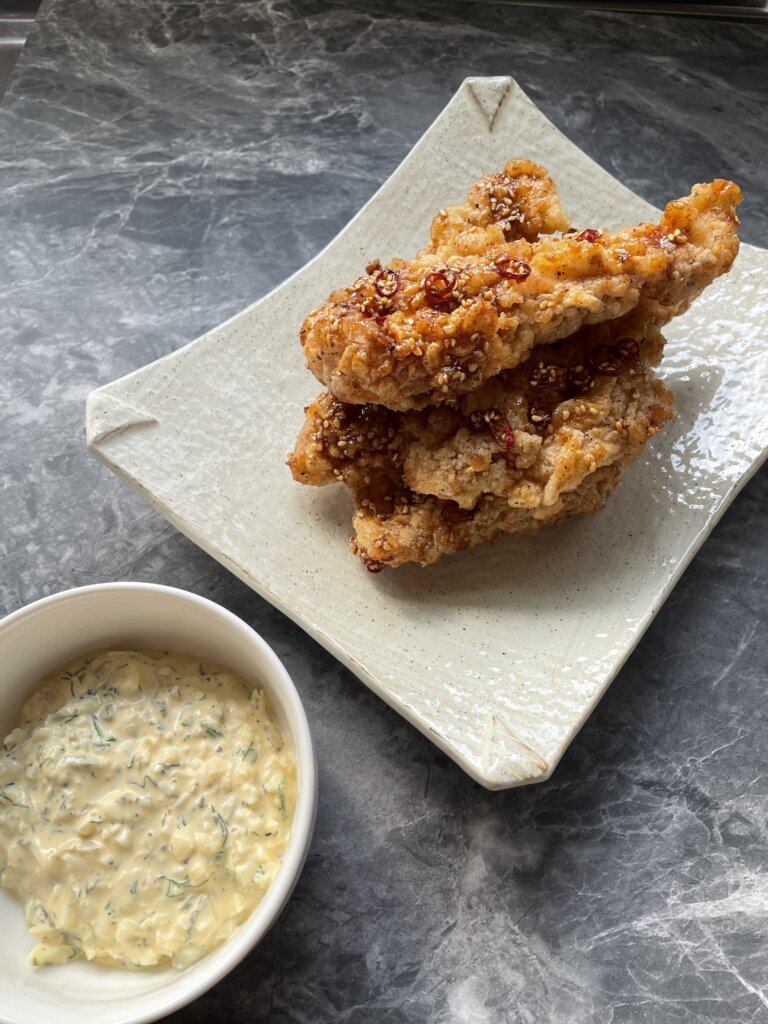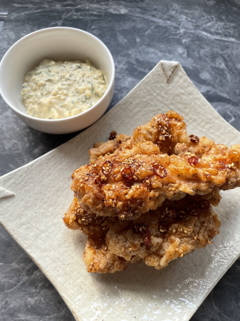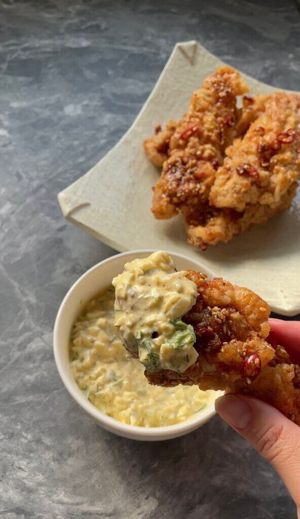 Cutting the chicken into strips also increases surface area, giving you more of that golden, craggy crust. Tossed in a sticky nanban sauce and paired with a rich tartar sauce, this version delivers both texture and flavor in a really satisfying way.