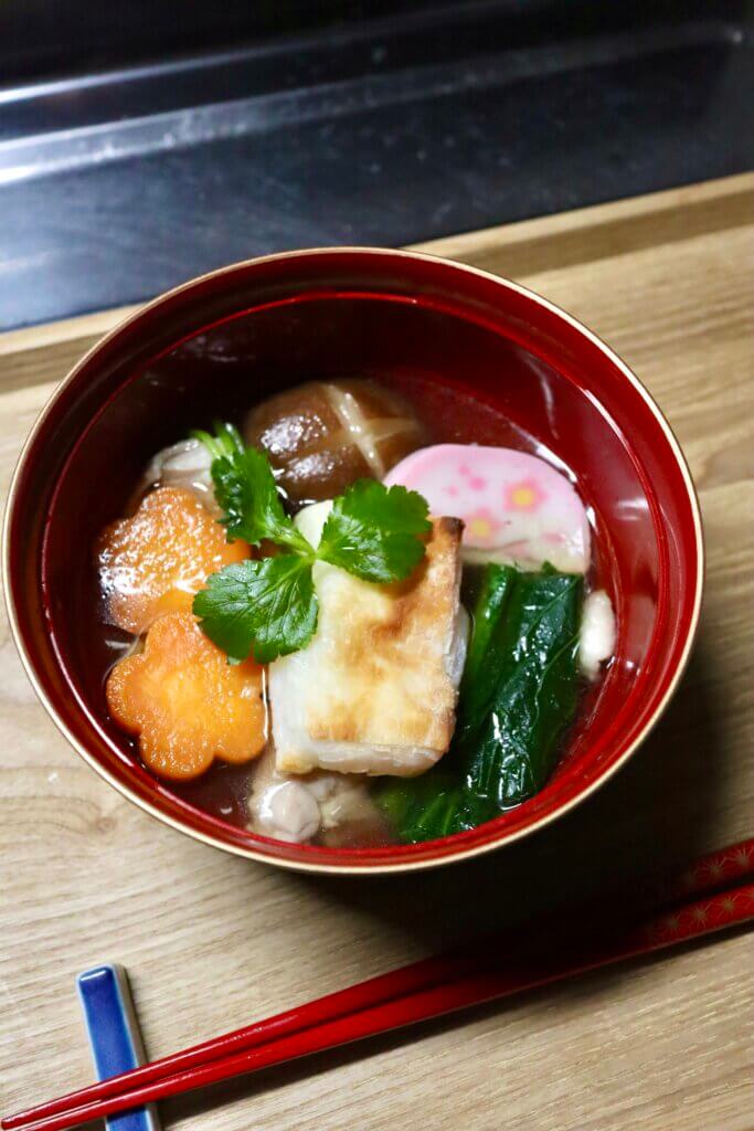 In eastern Japan, ozoni is often made with a clear, soy-seasoned dashi broth and square grilled mochi. In parts of western Japan, it’s more common to use a white miso broth and round mochi. There is no single correct version, only many regional and family styles.