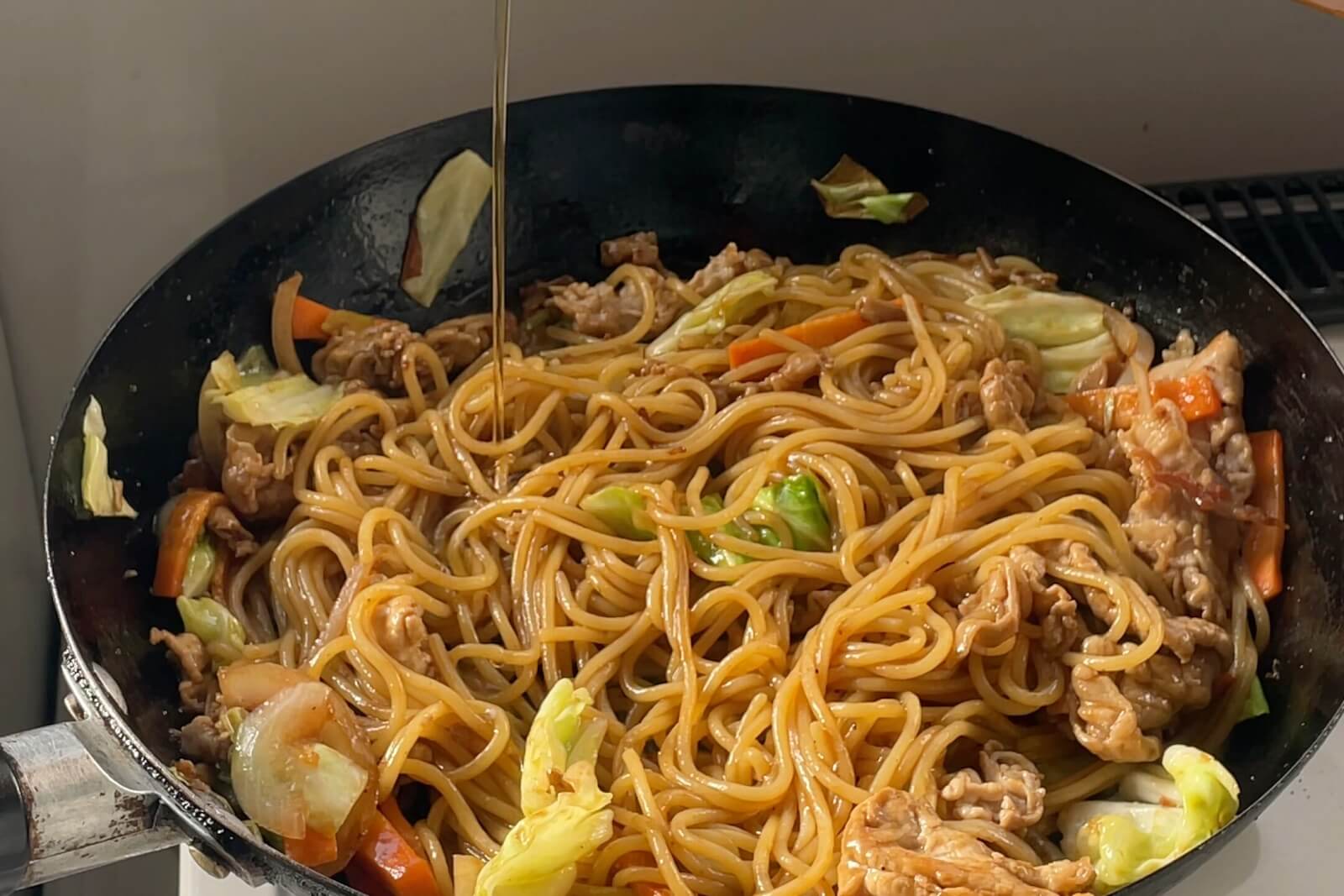 Asian grocery stores did sell yakisoba, but usually only in small packs with just three servings — and for that price, it never felt worth buying. So instead of relying on specialty products, the solution was to recreate yakisoba using sauces and ingredients already at home.